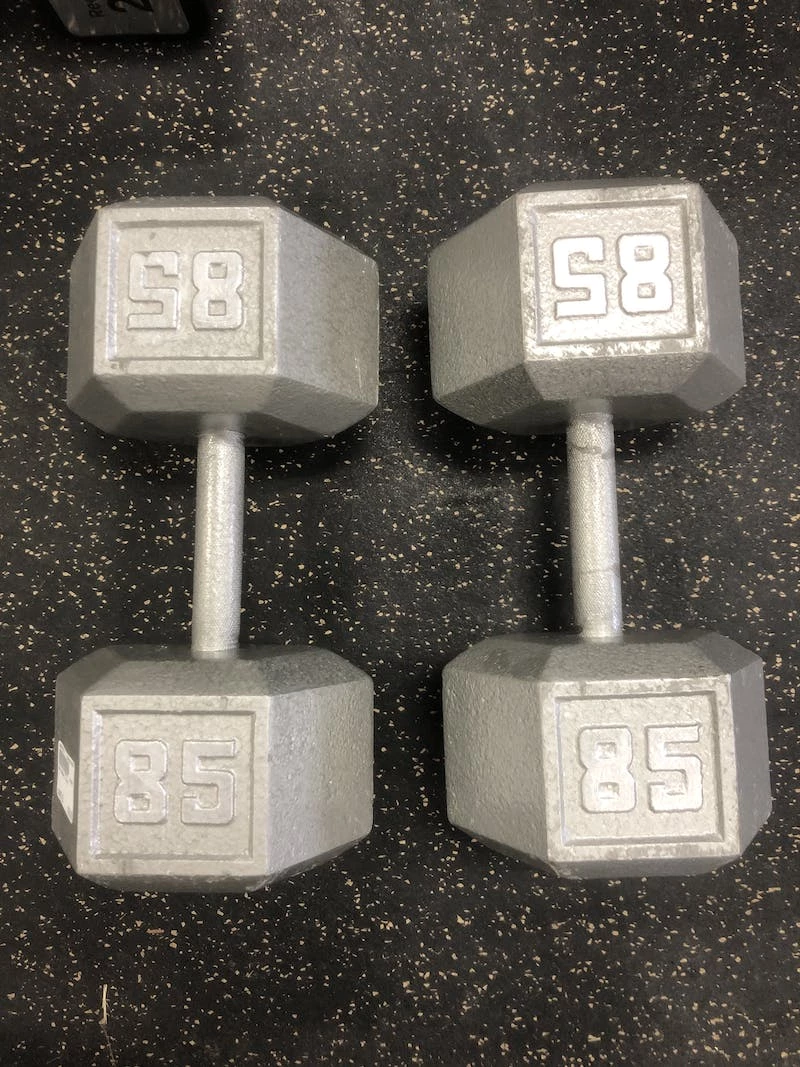 - 85 lb Hex dumbbell Pair